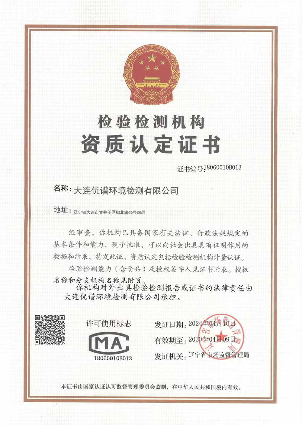 大連優(yōu)譜環(huán)境檢測有限公司是中國領(lǐng)先的第三方權(quán)威檢測機(jī)構(gòu)已取得CMA中國計量認(rèn)證資質(zhì)認(rèn)定,遼寧省生態(tài)環(huán)境廳備案,具備向社會出具公正數(shù)據(jù)的資格。擁有國際先進(jìn)的檢測分析儀器和經(jīng)驗豐富的檢測化驗工程師團(tuán)隊。